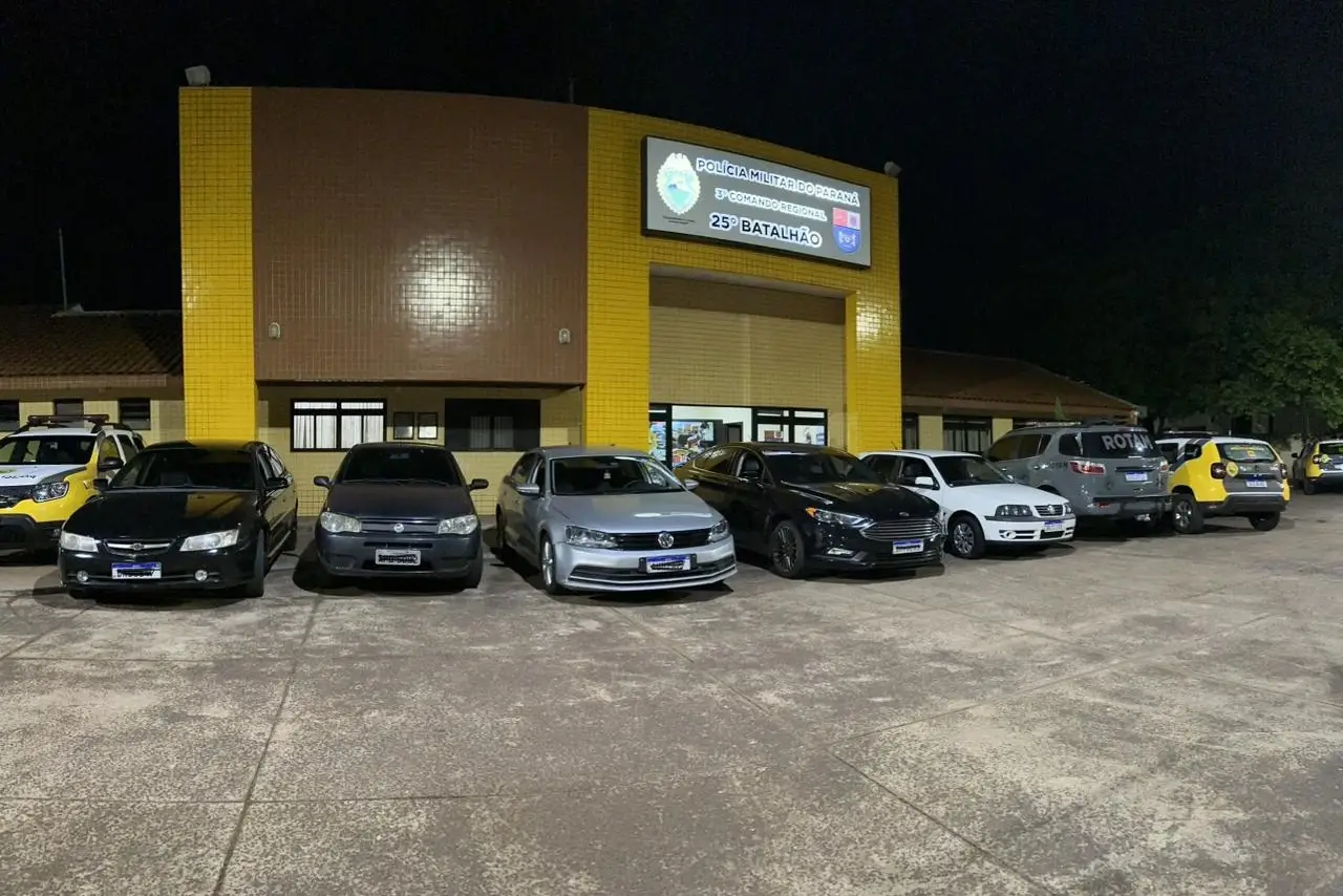 Já os GM Ômega, Ford Fusion e VW Gol apresentavam irregularidades de trânsito e por isso foram notificados e removidos ao pátio do 25º Batalhão de Polícia Militar.