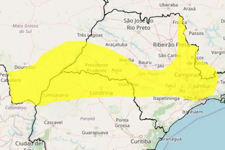 O alerta indica perigo potencial e tem vigência entre as 10h e 19h. Nesta situação a umidade relativa do ar pode variar entre 30% e 20%. Os riscos divulgados pelo Inmet são de incêndios florestais e à saúde.