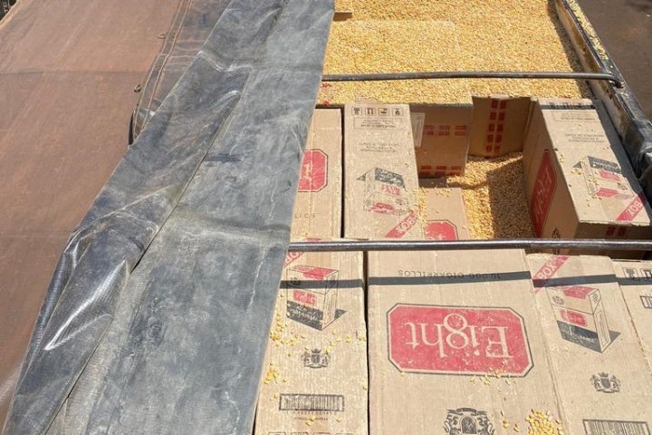 A situação aconteceu por volta das 9h da manhã no quilômetro 326,6 da rodovia. Os policiais abordaram o condutor de um veículo Scania/R-124 GA 420 Gx4 NEZ de cor branca com um semirreboque acoplado que, ao invés de transportar 36 mil quilos de milho em grãos, estava carregado com 800 caixas de cigarro da marca Eight.