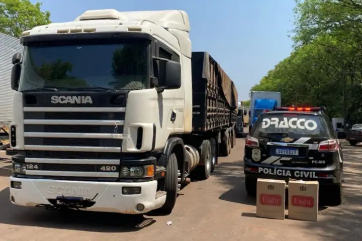 Um caminhão que transportava R$ 1,5 milhão em cigarros contrabandeados do Paraguai foi apreendido durante uma ação conjunta da Polícia Rodoviária Federal (PRF), Departamento de Repressão à Corrupção e ao Crime Organizado (Dracco) de Mato Grosso do Sul e Polícia Militar (PM) de Cafezal do Sul, na manhã deste domingo (24), na PR-323. Também foi preso o condutor do veículo, de 35 anos.