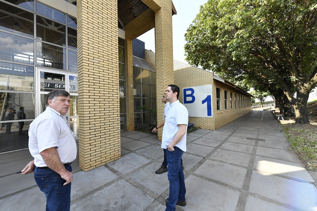 O prefeito Celso Pozzobom e o secretário de Indústria e Comércio, Junior Ceranto, visitaram na nesta segunda-feira (25), as futuras instalações do Parque Tecnológico de Umuarama, que deve ocupar uma edificação do município na avenida Ivo Sooma, saída para Xambrê. Por muito tempo o local abrigou uma unidade educacional do Serviço Social da Indústria (Sesi) e agora deve receber as adequações necessárias para a nova utilidade.