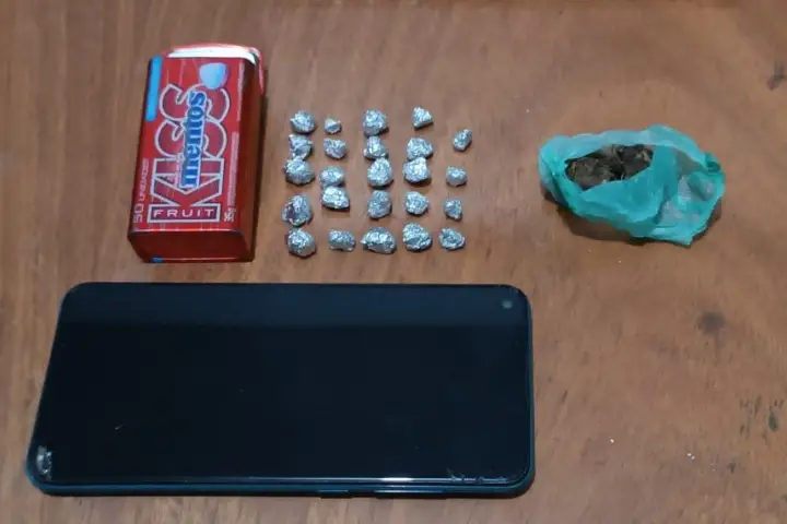 A Polícia Militar (PM) atendeu a ocorrência por volta das 4h desta madrugada. No local, eles tentaram abordar o menor, porém ele fugiu correndo dispensando um pequeno pacote branco com 8 pedras de crack e uma porção de maconha. Ainda em fuga, ele se desfez de outro pacote, com mais 16 pedras da droga.