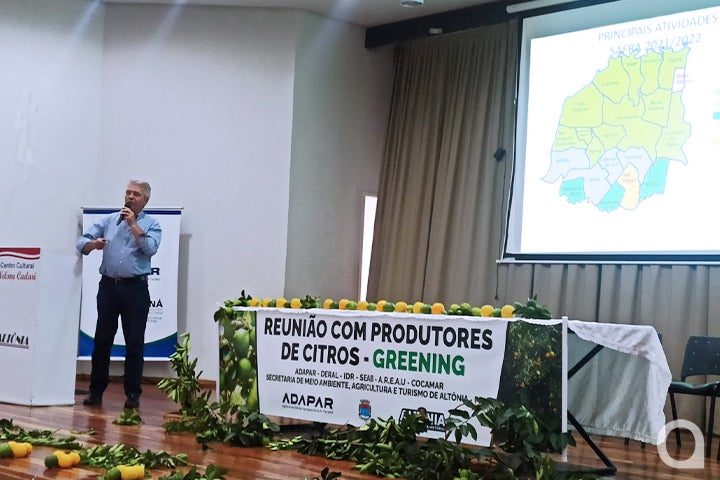 Com o objetivo de discutir avanço e combate do greening a Adapar (Agência de Defesa Agropecuária do Paraná) promoveu um encontro em Altônia, que reuniu a maioria dos citricultores do município, além de técnicos e lideranças políticas.