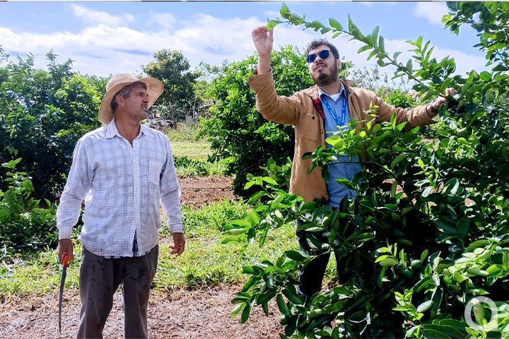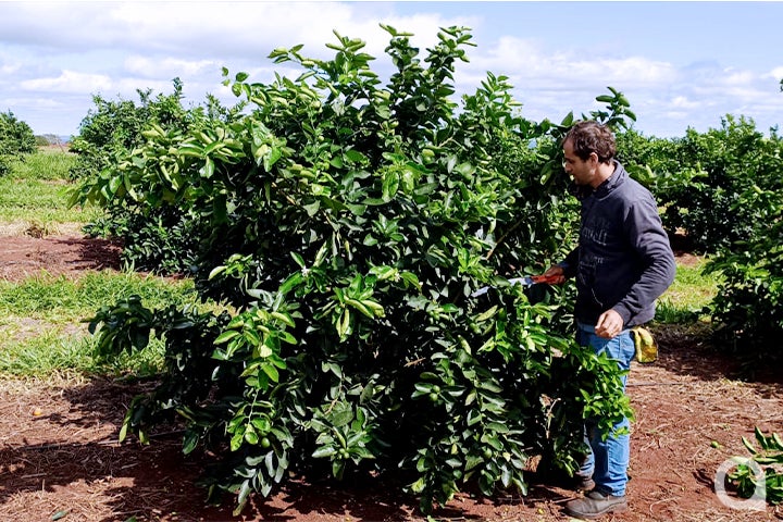 “O produtor realiza o monitoramento e quando encontra plantas com sintomas do greening, como ramos e folhas que se destacam pela cor amarelada, ‘mosqueamento’ nas folhas e frutos deformados e assimétricos, essa planta é eliminada; isso ajuda a impedir a disseminação da doença, mas não acaba com ela… é uma precaução, porém muito necessária”, explica.