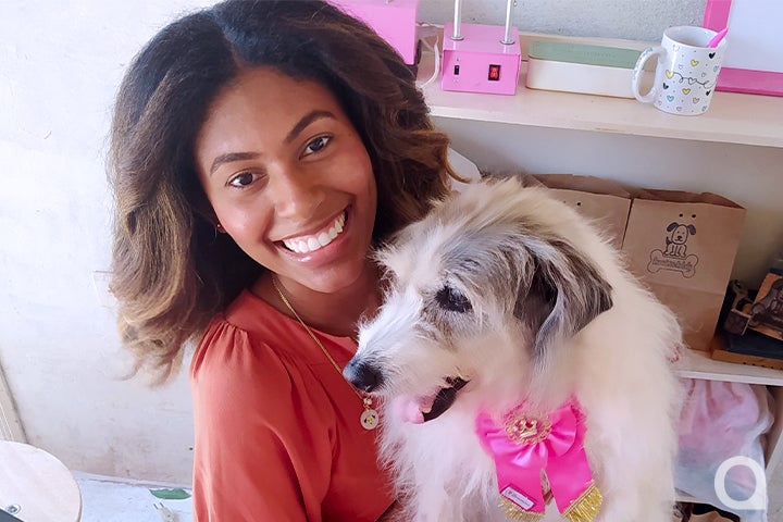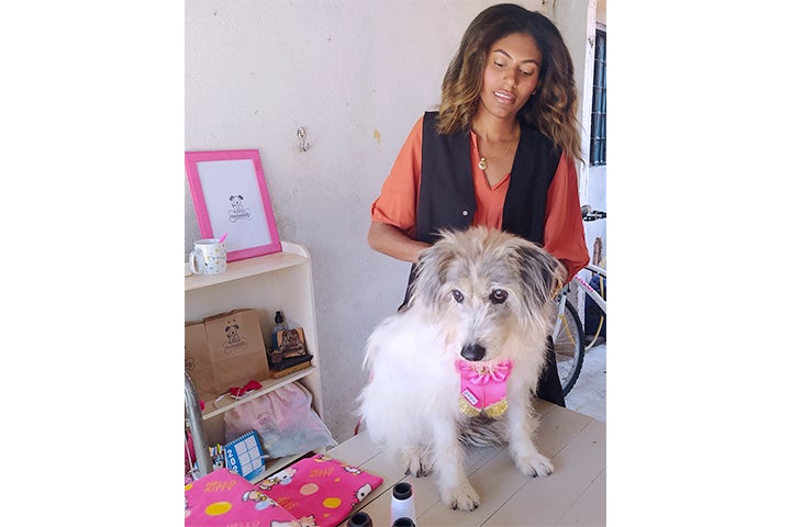 Foi Luly quem motivou Camila a empreender no setor de confecção de roupas e acessórios para cães e gatos. Ela começou em 2019 e, desde então, vem conquistando mais e mais clientes, pelo diferencial de seu modo de trabalhar: faz roupas sob medida.