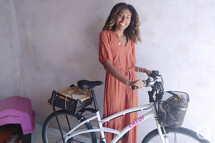 O cliente que compra recebe o produto numa sacolinha personalizada, também feita pela Camila, que também faz a entrega, atualmente com sua motocicleta Honda Biz [antes ia de bicicleta]. “Eu faço tudo”, diz, rindo, deixando à mostra seus lindos dentes e sua predisposição para a realização de um trabalho sério e talentoso.