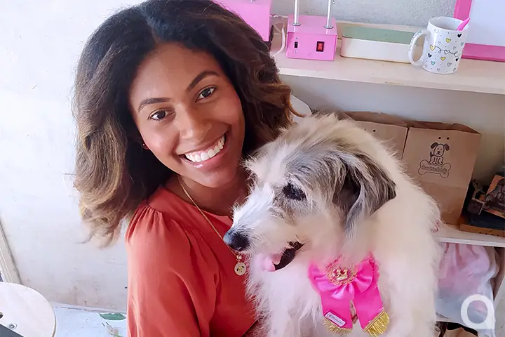 Foi Luly quem motivou Camila a empreender no setor de confecção de roupas e acessórios para cães e gatos. Ela começou em 2019 e, desde então, vem conquistando mais e mais clientes, pelo diferencial de seu modo de trabalhar: faz roupas sob medida.