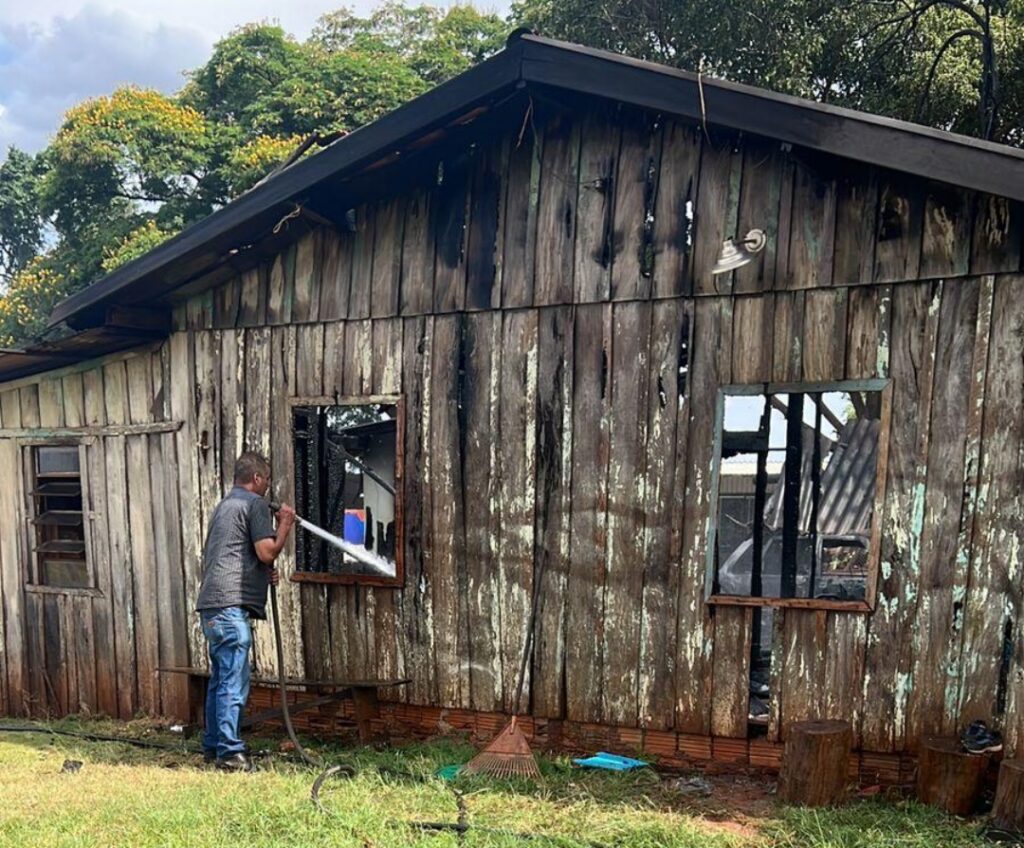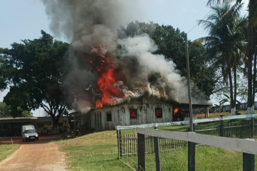 Uma casa foi consumida por um incêndio na tarde desta quinta-feira (28) em Iporã. O imóvel está localizado na estrada Elizabeth, que dá acesso ao pesqueiro Sol Nascente.