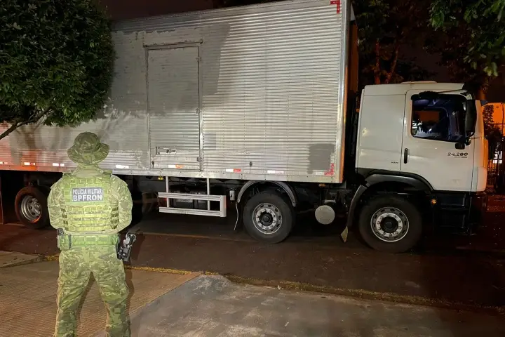 Um caminhão VW/24280 foi apreendido pelo BPFron (Batalhão de Operações de Fronteira) após uma tentativa de abordagem na noite desta quinta-feira (28), na PR-323, entre Umuarama e Perobal. O condutor do veículo ignorou a voz de abordagem dos policiais e tentou fugir com o veículo, porém abandonou o caminhão e fugiu a pé.