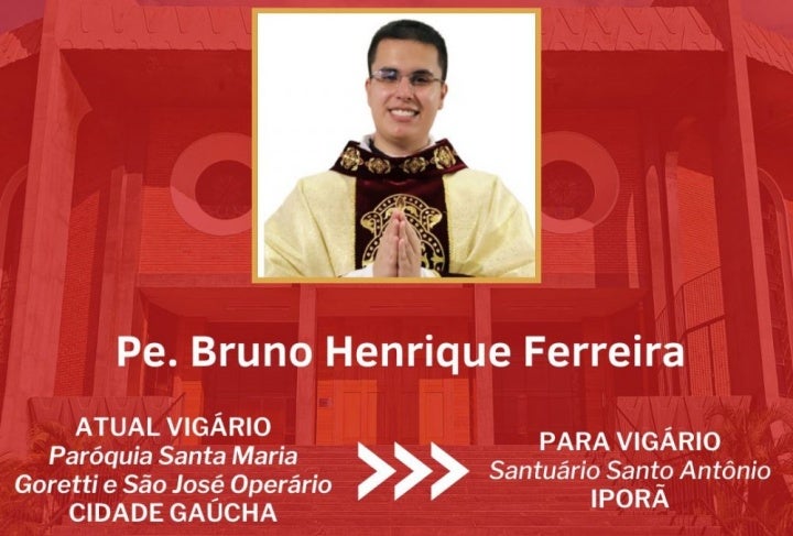 O Bipo Diocesano de Umuarama, Dom João Mamede Filho, anunciou nesta sexta-feira (29) duas transferências extemporâneas. O Pe. Bruno Henrique Ferreira, da Paróquia Santa Maria Goretti e São José Operário, de Cidade Gaúcha, será transferido para a Paróquia Santo Antônio, de Iporã, onde, em breve, assumirá a missão de Vigário Paroquial.