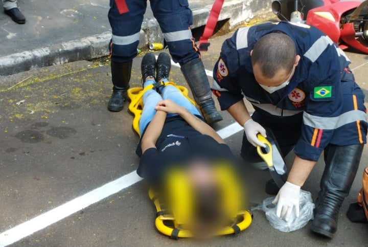Selinger explicou que a condutora da Honda Biz vermelha foi socorrida pela equipe do Samu. Ela teve escoriações no joelho e no braço direito, além de ter batido a cabeça, mas estava consciente. O Samu a encaminhou para o Hospital Nossa Senhora Aparecida para atendimento médico.