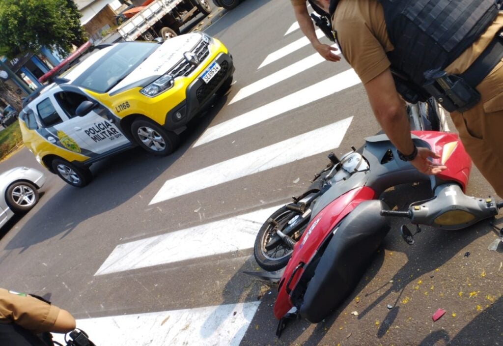Uma motociclista ficou ferida após se envolver em uma colisão na avenida Celso Garcia Cid, em Umuarama, por volta das 15h30 desta sexta-feira (29). O acidente ocorreu no cruzamento com a Rua Valter Kreiser.
