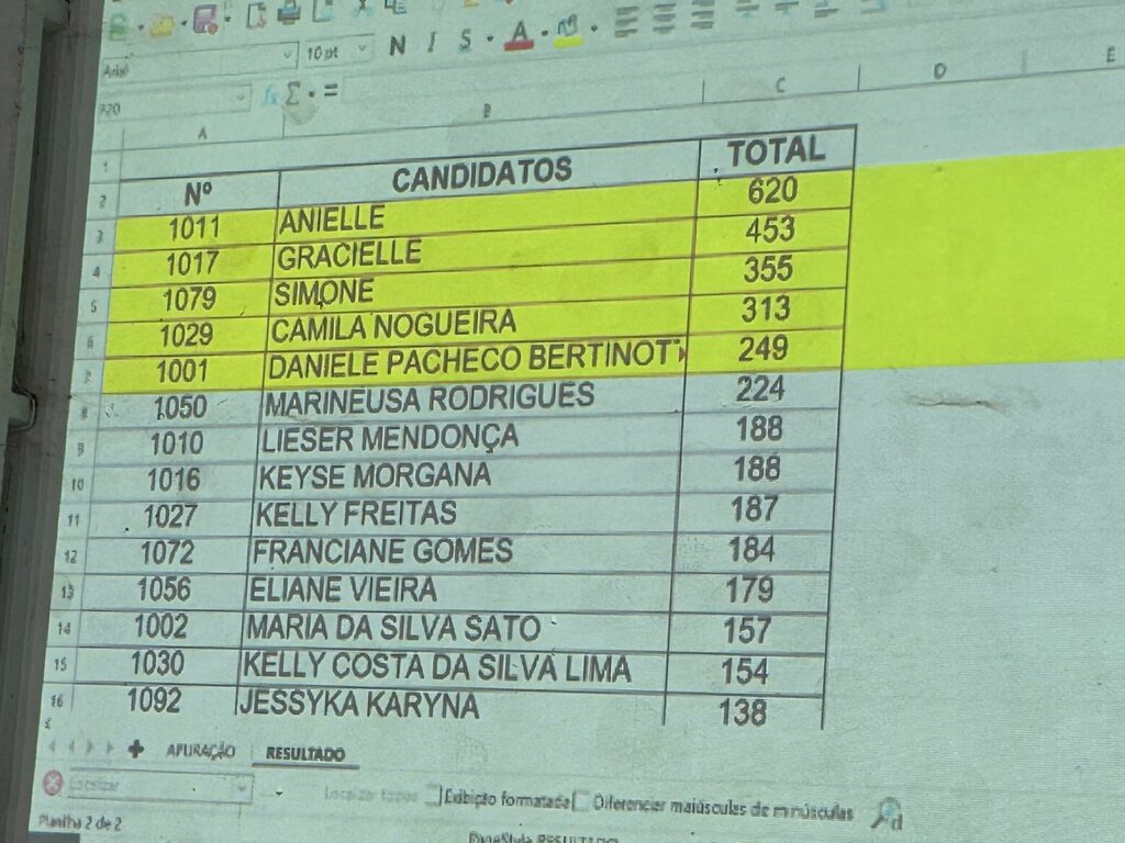 Saiu agora há pouco, às 19h25, o resultado da eleição para o Conselho Tutelar de Umuarama. as cinco eleitas (todas mulheres) são: Anielle (620 votos), Gracielle (453 votos), Simone (355 votos), Camila Nogueira (313 votos) e Daniele Pacheco Bertinoti (249 votos). Os demais candidatos que participaram do pleito ficarão como suplentes.