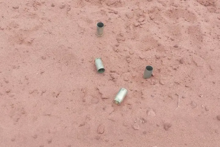 Nesta manhã, por volta das 8h, os militares foram novamente ao imóvel e localizaram na beira da estrada (cerca de 45 metros distante da casa) 12 estojos deflagrados de calibre 9 mm, Speed Luger. O material foi recolhido e entregue na Delegacia da Polícia Civil de Icaraíma.