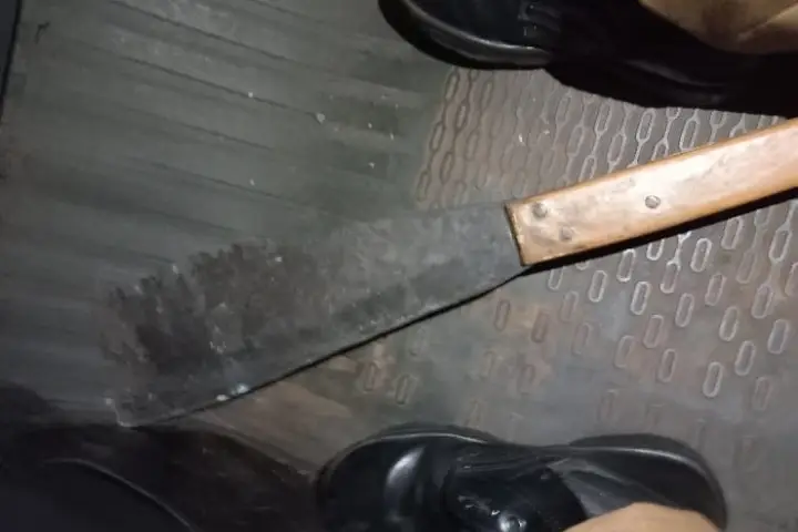 Os policiais foram até o local e constataram que a vítima estava com um sangramento na mão direita. Já o suspeito, ao ver os policiais, largou o facão e recebeu voz de prisão no local, sendo encaminhado para a Delegacia de Polícia do município.