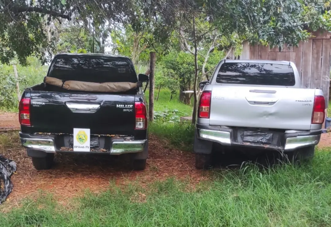 Duas caminhonetes Hilux foram recuperadas pela equipe da Polícia Ambiental de Umuarama no último sábado (7). A situação aconteceu no município de Douradina, nas proximidades do Ribeirão Capivara, na Estrada Cachoeirinha.