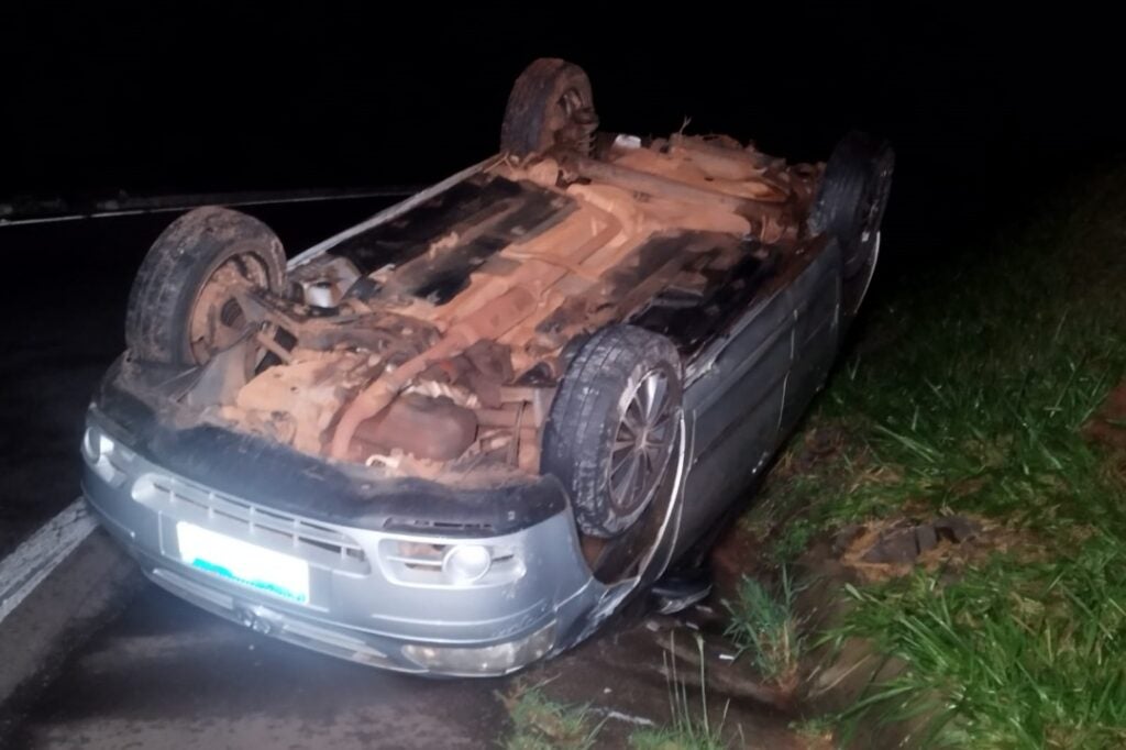 Carro com família de Toledo capota no trevo de acesso a Alto Piquiri na noite deste domingo