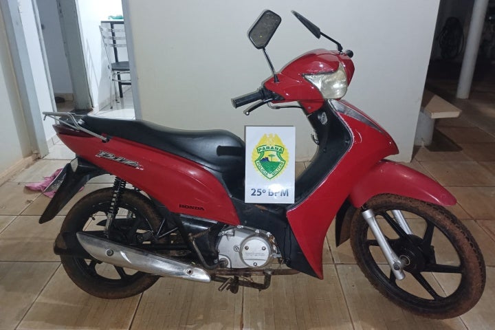 A Polícia Militar (PM) recuperou uma Honda Biz que havia sido furtada no fim da madrugada de domingo (8) no município de Alto Piquiri. O veículo foi localizado na noite do mesmo dia com um adolescente de 17 anos que, após ter a sua própria motocicleta recolhida por uma infração de trânsito, furtou o outro veículo para ir até a cidade onde reside, em Brasilândia do Sul.