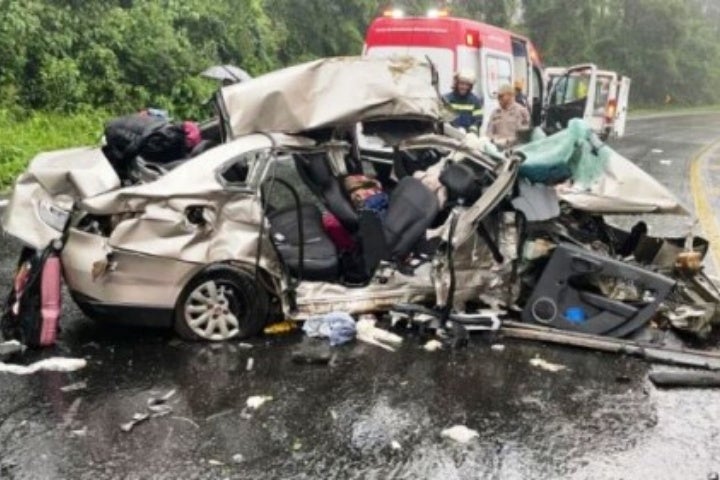 A Polícia Rodoviária Federal (PRF) ainda não divulgou detalhes da dinâmica do acidente, que deixou o carro do casal completamente destruído.