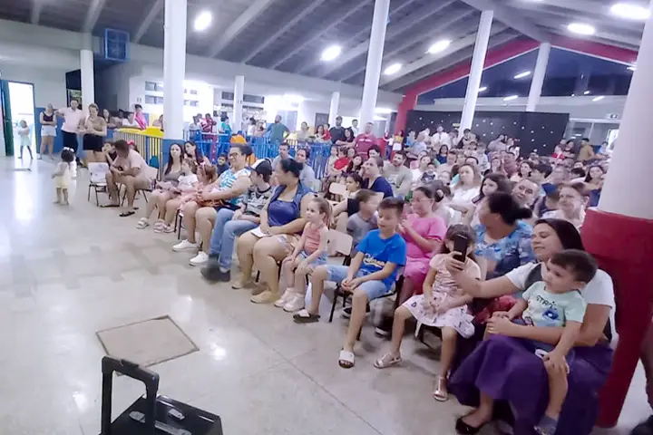 Após o teatro, crianças e seus familiares conheceram o ônibus totalmente adaptado e preparado para que despertar e estimular o encanto pelo mundo da leitura. A Biblioteca Itinerante leva há 12 anos literatura, cultura, música e arte aos estudantes da Rede Municipal de Ensino de Umuarama. “Foi uma noite muito agradável e significativa para as famílias, a comunidade e toda a equipe da Educação”, finalizou a secretária.