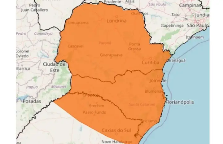 O Instituto Nacional de Meteorologia (Inmet) divulgou um aviso de tempestade para os três estados da região Sul do Brasil. O alerta entra em vigência às 21h01 desta quarta-feira (11) e segue até 10h de quinta-feira (12), feriado de Nossa Senhora Aparecida.
