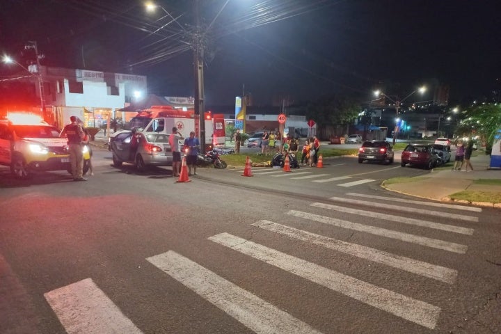 A colisão aconteceu por volta das 23h45. A PM apurou que o motociclista seguia pela avenida Paraná com sentido à praça Miguel Rossafa, quando no cruzamento com a rua Leonildo Stecca, colidiu transversalmente com a condutora do Corolla, de 29 anos, que seguia no sentido Alto da Paraná.