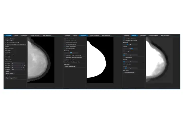 Desta forma, uma das principais potencialidades do ContExt na análise das malhas e na simulação numérica é a sua capacidade em selecionar pequenos grupos de regiões que contêm valores mais luminosos, obtidos pelo processo de digitalização da imagem que podem não ter sido identificados na análise da mamografia.