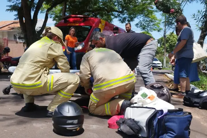 Uma motociclista de 33 anos ficou ferida após um acidente no fim da manhã desta segunda-feira (16), na Avenida Pernambuco, entre a Rua Bahia e a Avenida São Paulo, em Umuarama.