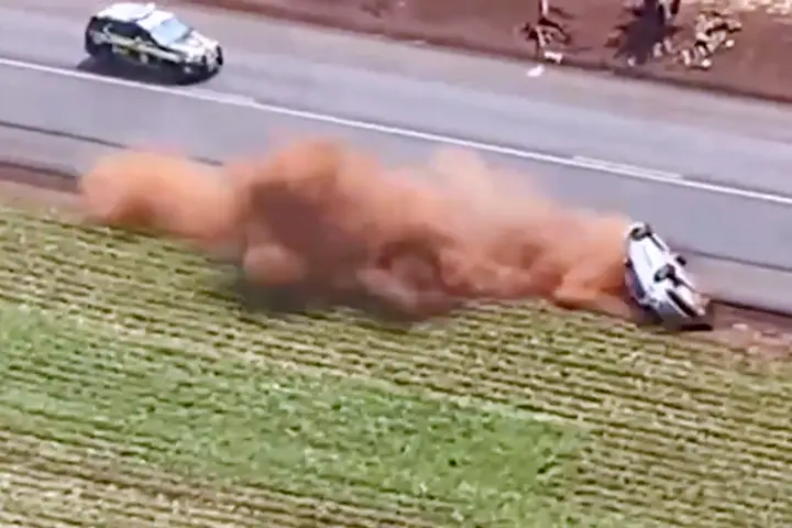 Ao visualizar a viatura policial, o condutor do veículo carregado, que estava parado no trânsito em virtude de obras na pista, acelerou pela contramão quase atropelando os funcionários responsáveis pela obra. A equipe da PRF iniciou acompanhamento, orientado pela aeronave da Polícia Militar, alcançando o veículo após este colidir em um barranco.