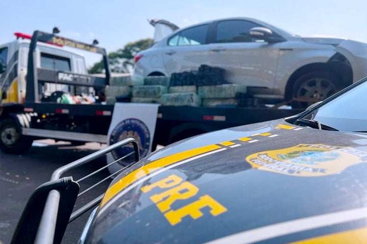 Polícia Rodoviária Federal (PRF), com o apoio da Polícia Militar (PMPR), apreendeu na tarde de domingo (15), 397 quilos de maconha transportados em um carro em Toledo (PR), na PR-239.
