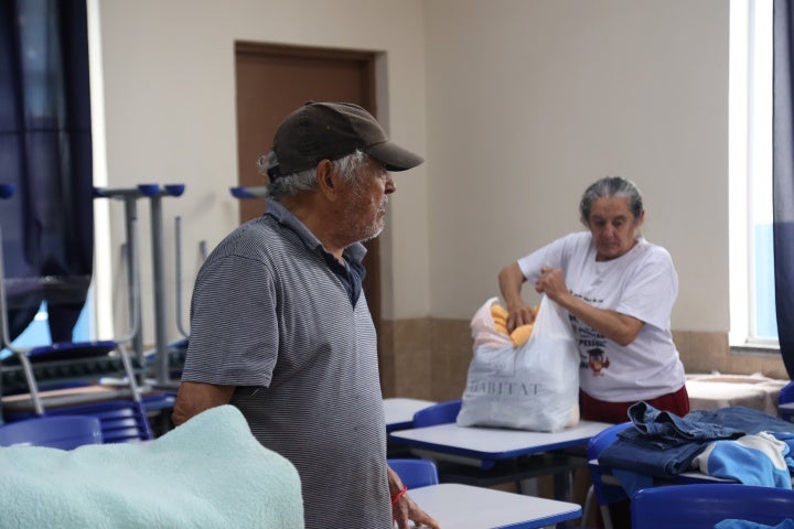 “Lá no abrigo não faltou nada para a gente, assim como aqui. Temos água, comida e conforto graças a Deus, então melhor que isso só o céu. Eu preferia voltar para a minha casa, mas tendo essa assistência é mais tranquilo até que a água baixe e a gente possa voltar para limpar tudo e continuar a vida”, disse o vendedor.