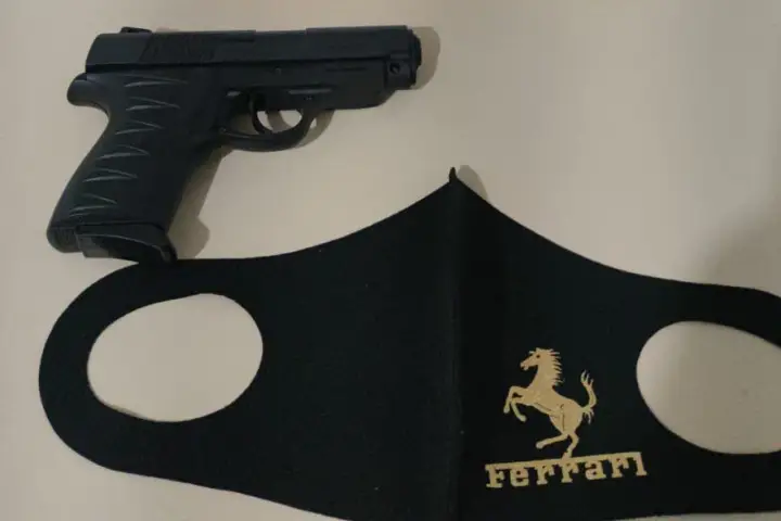 A primeira situação aconteceu por volta das 18h20, quando os policiais receberam informações de que o autor estaria em atitude suspeita na região próxima da rodoviária. No local, ele foi abordado e constatado que estava com um simulacro de pistola e uma máscara preta.