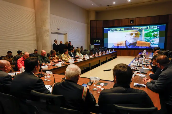 PRESENÇAS – Participaram da reunião o chefe da Casa Civil, João Carlos Ortega; o chefe da Casa Militar, coronel Sérgio Vieira Benício; os secretários estaduais da Segurança Pública, coronel Hudson Teixeira; Infraestrutura e Logística, Sandro Alex; Desenvolvimento Sustentável, Valdemar Bernardo Jorge; Desenvolvimento Social e Família, Rogério Carboni; Justiça e Cidadania, Santin Roveda; Comunicação, Cleber Mata; o comandante-geral da Polícia Militar do Paraná, Jefferson Silva; o comandante-geral do Corpo de Bombeiros Militar do Paraná, coronel Manoel Vasco Figueiredo Junior; o coordenador estadual da Defesa Civil, coronel Fernando Schunig; o presidente da Assembleia Legislativa do Paraná, Ademar Traiano; os deputados estaduais Alexandre Curi, Hussein Barki, Matheus Vermelho, Marcio Pacheco, Thiago Buhrer, Luiz Claudio Romanelli, Artagão Junior, Tercílio Turini, Luis Corti, Alisson Wandscheer, Anibelli Neto, Flávia Francischini e Batatinha; os prefeitos de Peabiru, Julio Frare; Roncador, Vivaldo Lessa; Rio Azul, Leandro Jasinski; Jardim Alegre, José Roberto Furlan; Santa Izabel do Oeste, Jean Catto; Ivaiporã, Carlo Gil; Paulo Frontin, Jamil Pech; União da Vitória, Bachir Abbas; Paula Freitas, Sebastião Algacir Dalpra; Rio Negro, James Valério; Cascavel, Leonaldo Paranhos; São Jorge D’Oeste, Leila da Rocha; Mangueirinha, Elídio Zimerman de Moraes; Prudentópolis, Osnei Stadler; Rebouças, Luiz Everaldo Zak; Porto Amazonas, Elias Gomes da Costa; Virmond, Neimar Granoski; Dois Vizinhos, Luis Carlos Turatto; e São Mateus do Sul, Fernanda Sardanha.