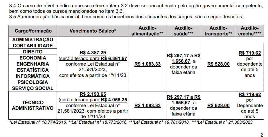 - Técnico administrativo: 1 vaga e 100 vagas de cadastro reserva.