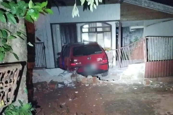Após algum tempo de fuga, o motorista perdeu o controle do automóvel e bateu em um muro de residência, causando danos à propriedade de uma moradora, de 57 anos.