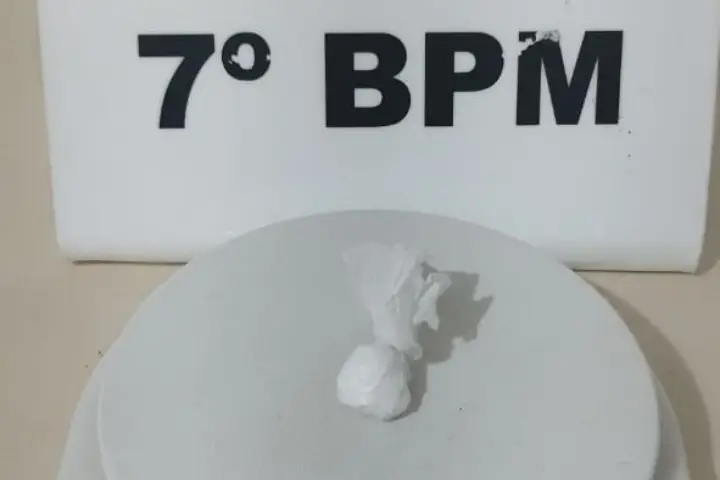 Após a imobilização, os policiais verificaram que o objeto que havia sido arremessado pelo suspeito era uma porção de 3 gramas de cocaína.