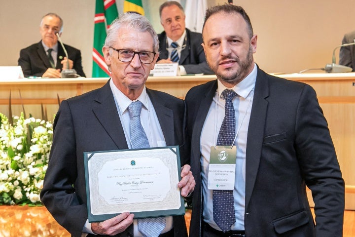 Este ano, houve a entrega da honraria também a profissionais formados em outros estados. Durante a cerimônia, o Dr. Luiz Carlos mereceu destaque na fala do secretário de Estado da Saúde, Beto Preto, que compunha a mesa de autoridades. No total, 67 profissionais da Medicina foram agraciados com o Diploma, entregue no auditório do CRM-PR.
