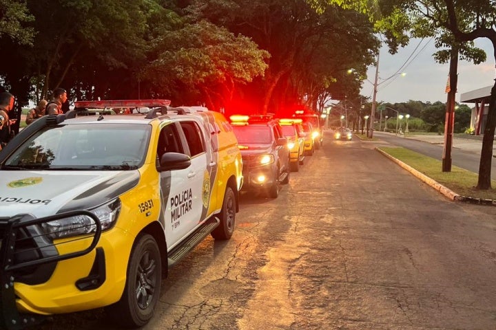 Ao todo, sete viaturas, um guincho e motocicletas compõem o comboio da operação. Até o momento, foram cumpridos dois mandados de prisão em Cruzeiro do Oeste, além da apreensão de uma motocicleta em Tapejara.