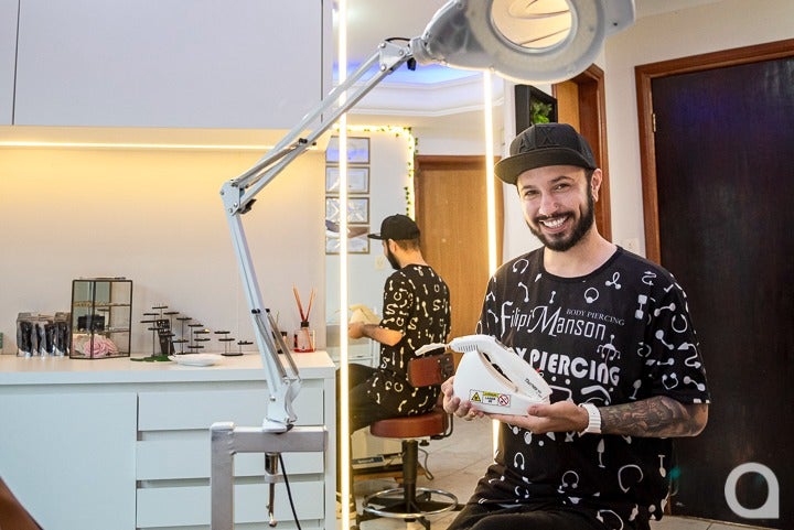 Entusiasmo borbulha nele. Basta uma conversa rápida para ser contagiado com seu alto-astral. Filipi Manson, 32 anos, profissional que se destaca no rol dos que dominam a técnica de colocação de piercing – ele é um body piercer ou, traduzindo, um perfurador de corpo – viu neste nicho de mercado de trabalho um jeito de aliar paixão e vocação.