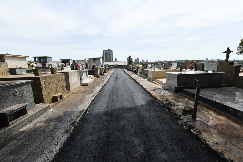 Após calçamento externo, vias do cemitério de Umuarama recebem reperfilamento e manutenção