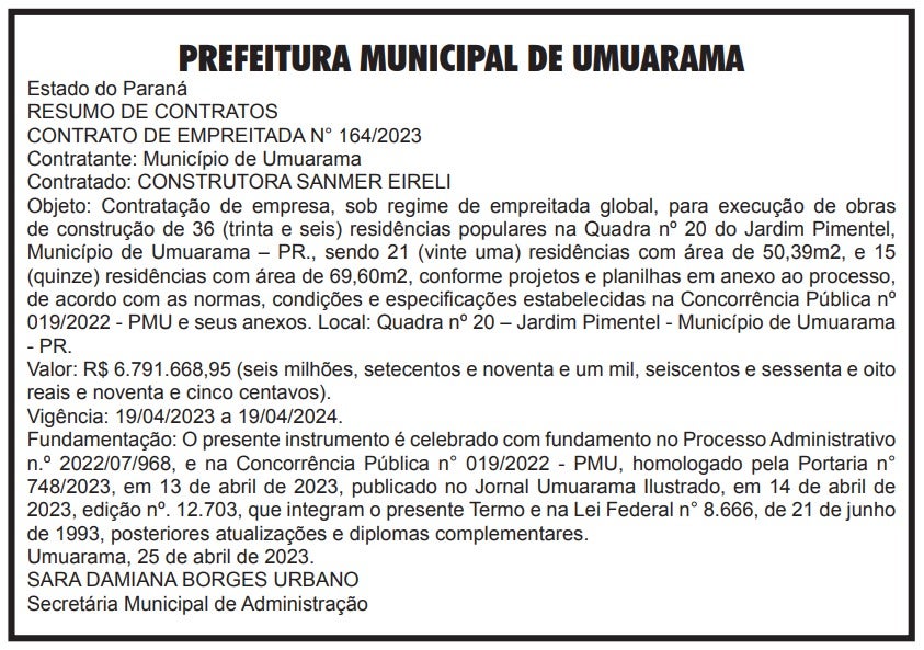 Em nota, a prefeitura de Umuarama informou que o município respondeu às indagações do Ministério Público e aguarda a manifestação da Justiça. Até que isso ocorra, a construção das casas continua em andamento, com o compromisso de cumprir todas as determinações que possam surgir no curso da investigação.
