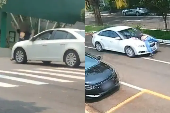 O homem, de 33 anos, que foi flagrado sendo carregado no capô de um automóvel pela avenida Flórida, na região central de Umuarama, nesta quinta-feira (26), afirmou que o episódio foi uma tentativa de fuga da motorista do veículo, que minutos antes havia batido em seu caminhão. Ele também afirmou que teve que saltar do carro em movimento, pois a condutora não parou em nenhum momento.