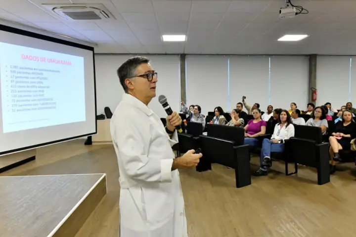 Em palestra para agentes comunitários de saúde, realizada no Anfiteatro Haruyo Setogutte, o médico detalhou que a sífilis chegou e ficou, propagando-se em especial em tempos de guerras.