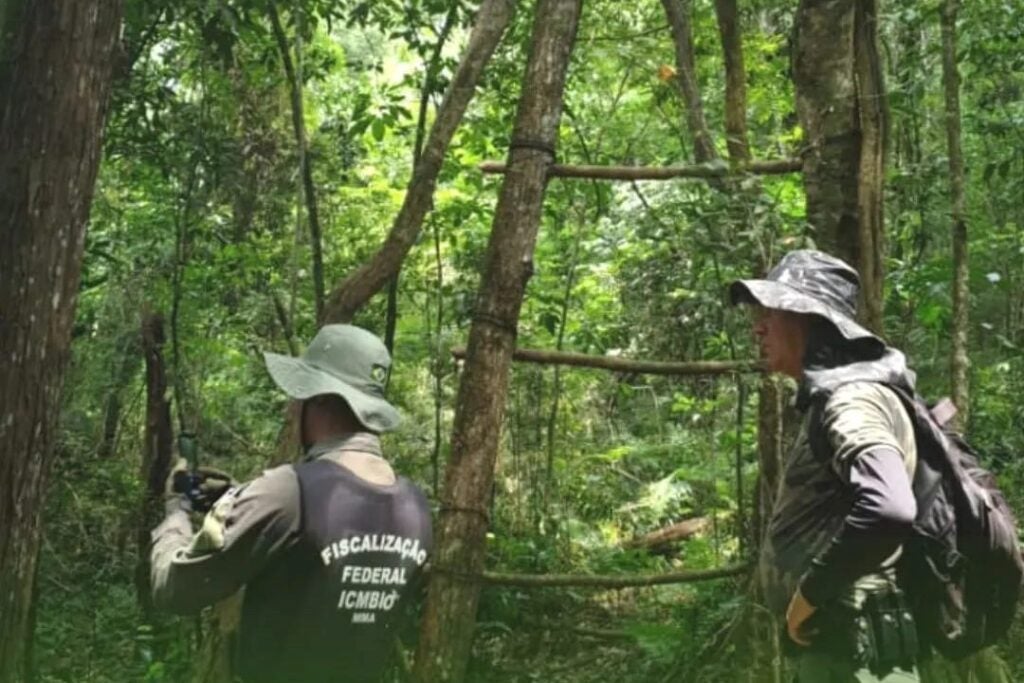 Durante a ação, foram destruídas cinco estruturas tipo jirau usadas por caçadores e uma armadilha tipo jaula foi apreendida.