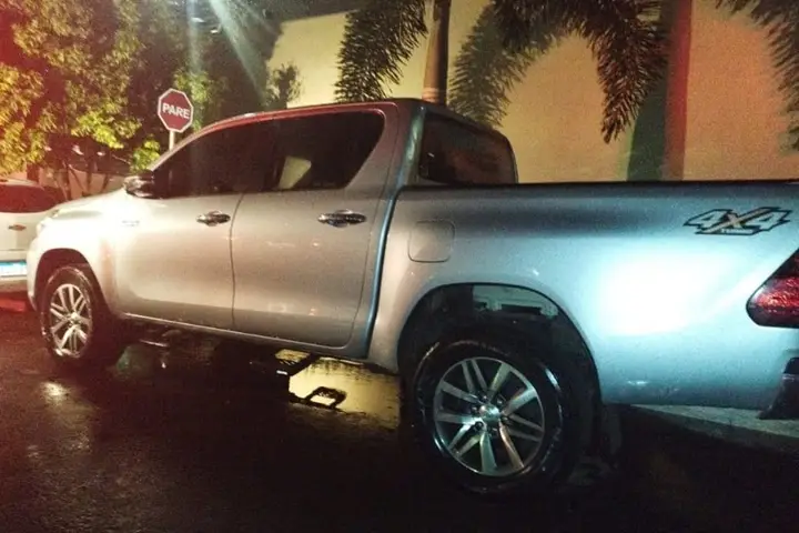Uma caminhonete Toyota Hilux 2019 foi localizada no bairro Ecoville, em Umuarama, poucas horas após ter sido furtada. O veículo já havia tido a placa alterada.
