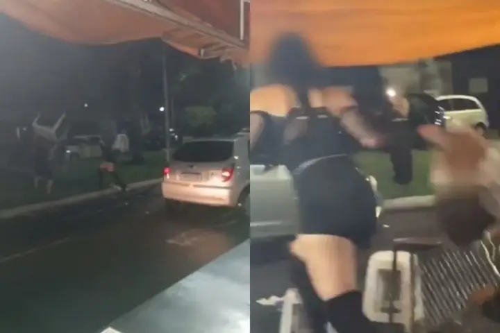 Momentos após, uma mulher que estava na briga se aproxima de uma barraca da praça de alimentação e joga uma panela com óleo fervendo contra o automóvel. Por sorte, o líquido é derramado antes do arremesso, a princípio não causando queimaduras em nenhum dos envolvidos.