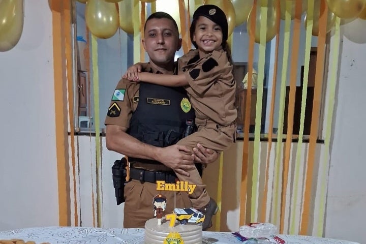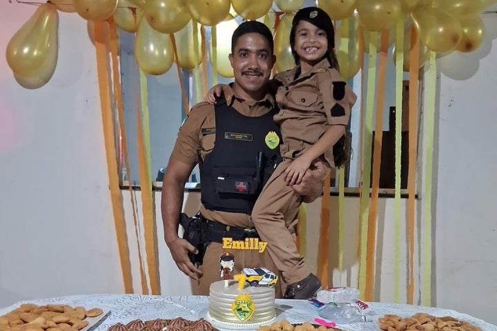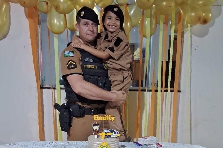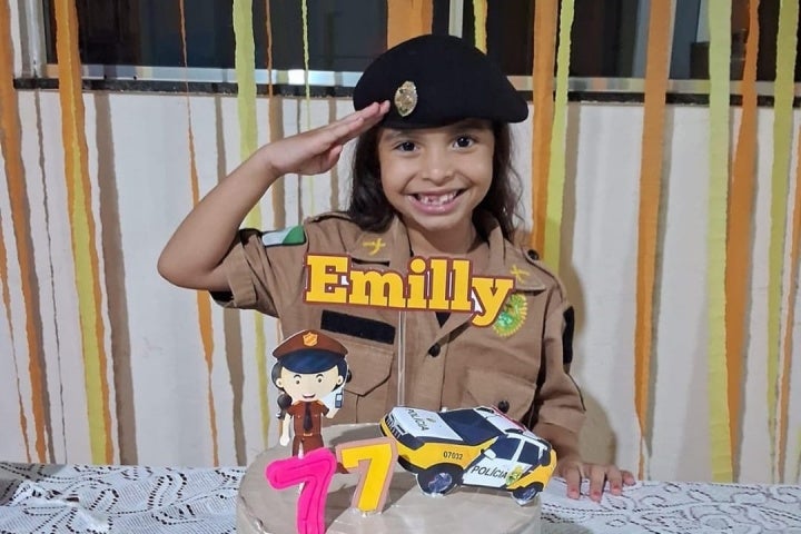 A menina é muito fã da Polícia Militar (PM) e por isso sua festinha especial contou com a temática da corporação e até uma farda usada pela aniversariante.