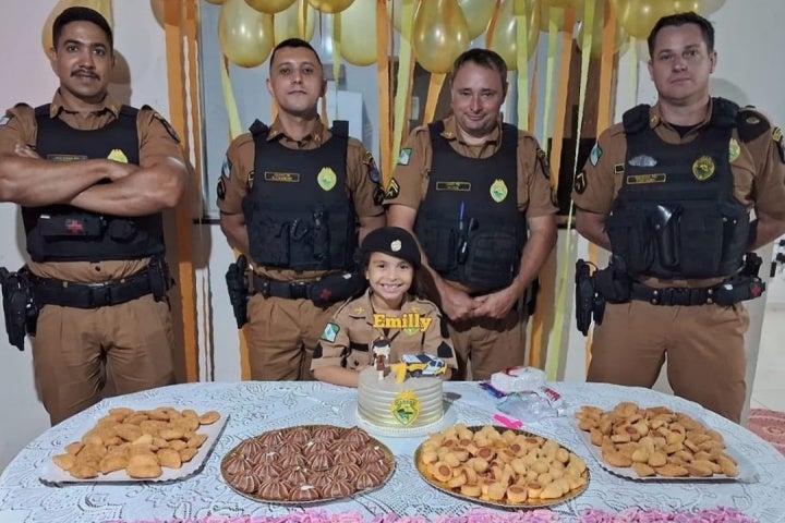 Policiais militares dos destacamentos de Icaraíma e Alto Paraíso – pertencentes ao 25º Batalhão (BPM) – fizeram uma grande surpresa para a pequena Emilly, moradora do distrito de Porto Figueira, durante seu aniversário de 7 anos, que aconteceu na última quinta-feira (26).