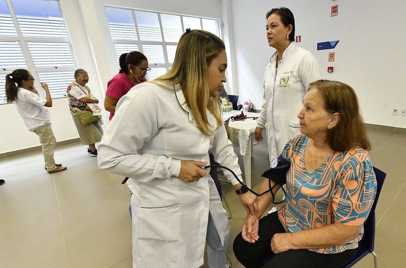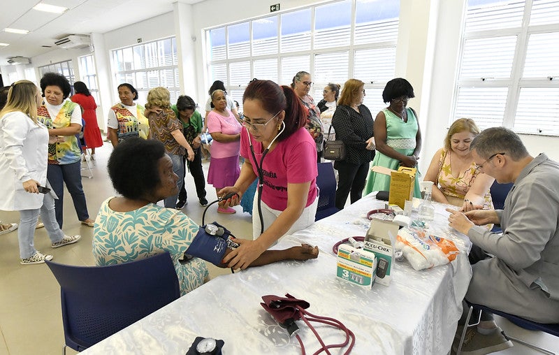 A festança começou por volta das 9h, no anfiteatro do Sest/Senat, e além de música, dança e muita animação, os participantes tiveram serviços de saúde (aferição da pressão arterial e testes de glicose/diabetes).