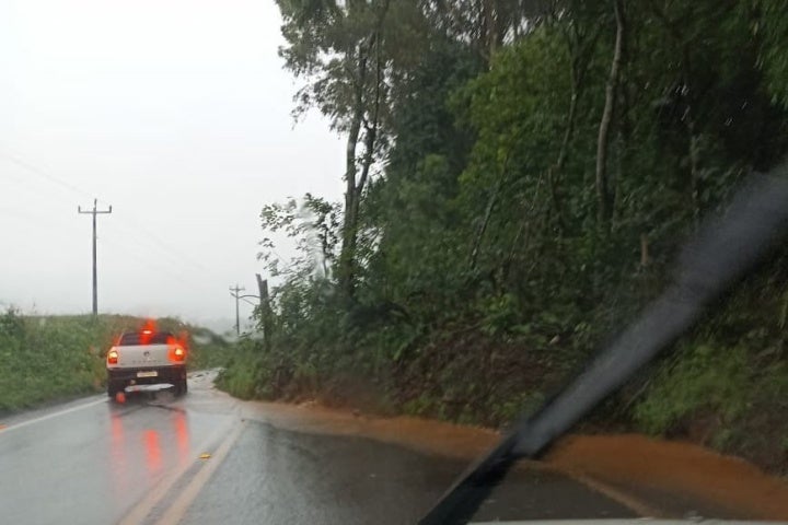 PR-493 entre Dois Vizinhos e Verê (novo) – Trecho em meia pista por queda de barreira, tráfego deve ser totalmente liberado após remoção do material e limpeza do pavimento.